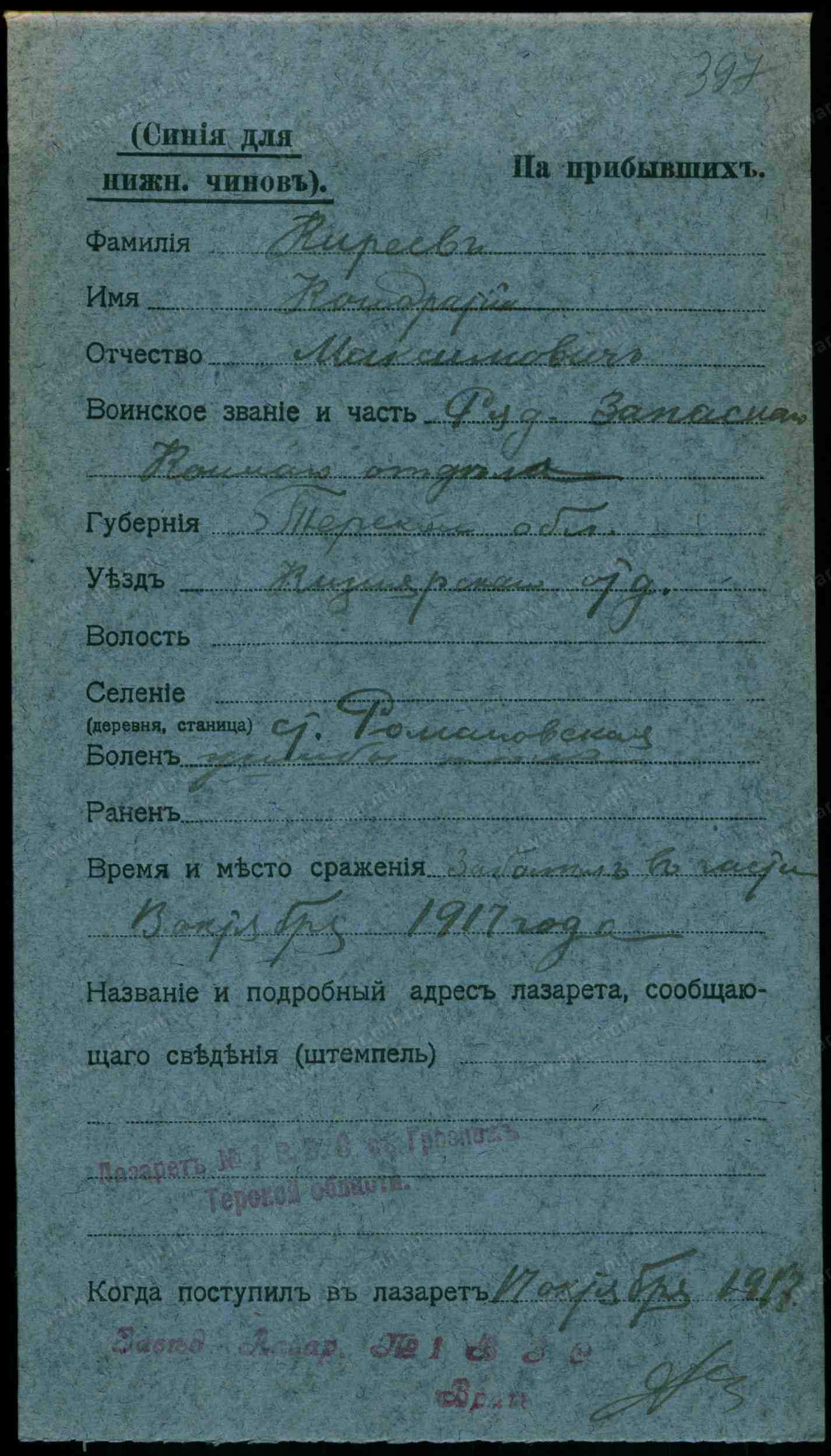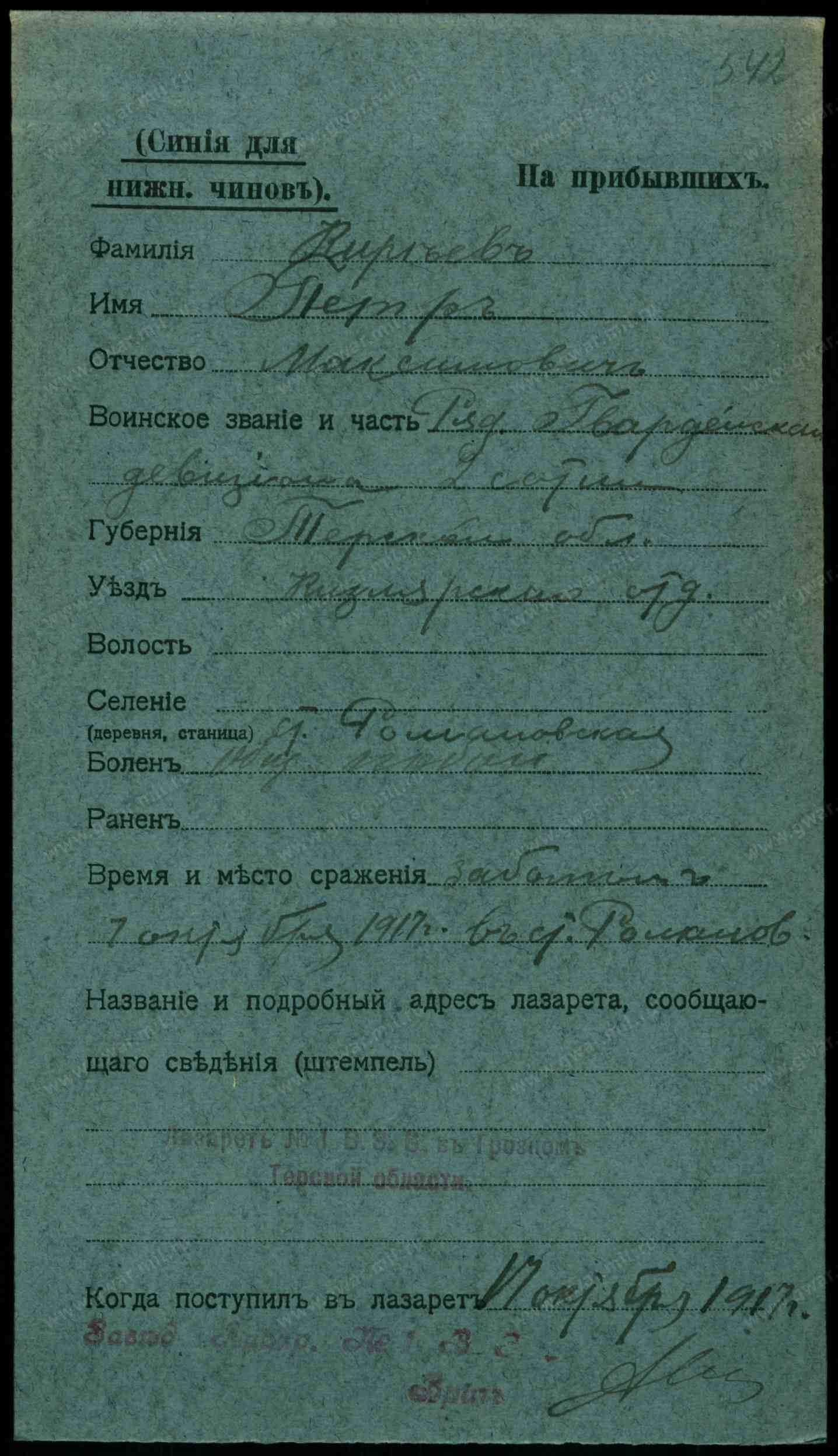 Станицы Закан-Юртовской Кириллу Кирееву - серебряная медаль с надписью " За усердие" для ношения на шее на Станиславской ленте.