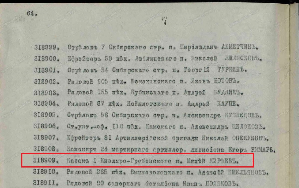Список Станичным Атаманам, депутатам от станиц и старикам почетного караула Терского казачьего войска, коим Всемилостивейше пожалованы медали (Пр № 81 от 30 марта 1889 года, о награждении в 1888 году золотых и серебряых медалей лицам ТКВ)