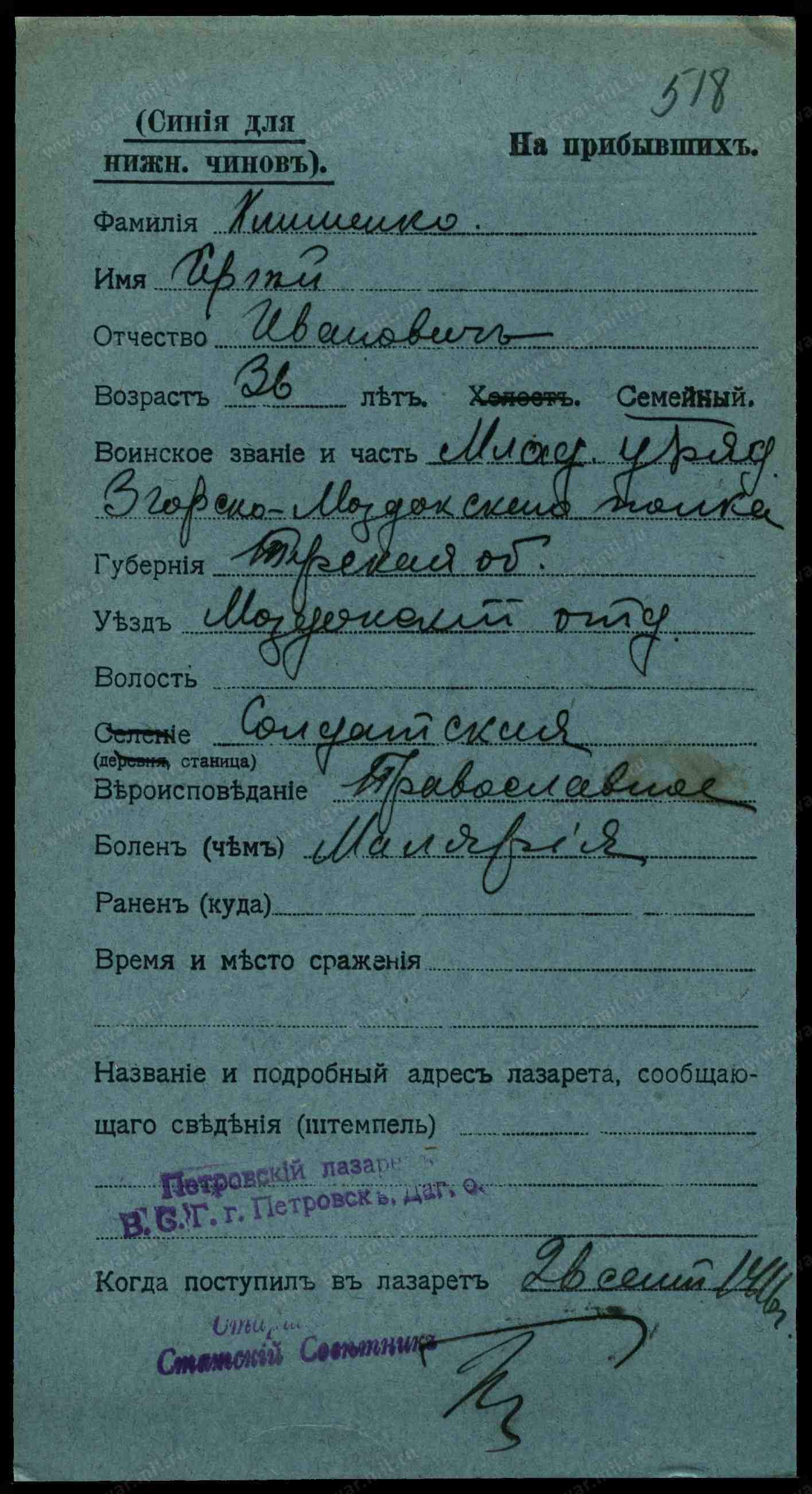 Рядовой __.__.1917 Кабардино-Балкарская АССР, Прималкинский р-н, станица Солдатская. Донесение о потерях