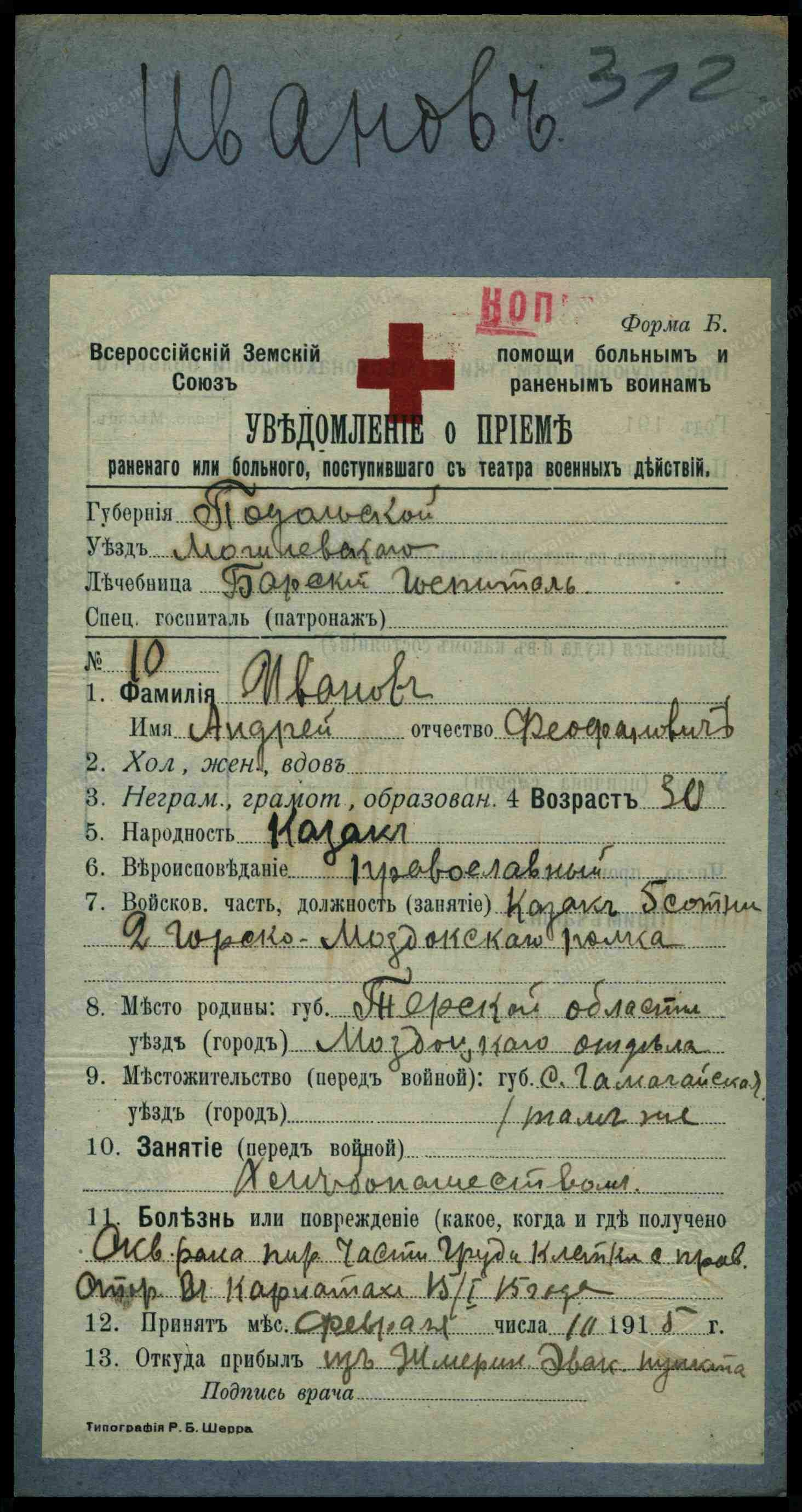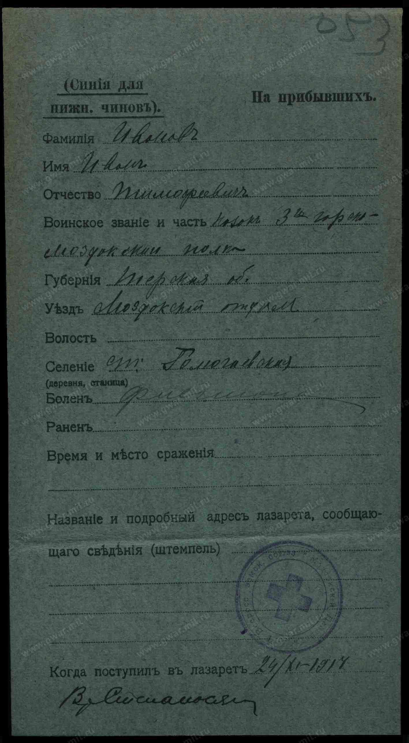 Красноармеец __.__.1902 Орджоникидзевский край, Моздокский р-н, ст-ца Гамошевская. Военно-пересыльный пункт