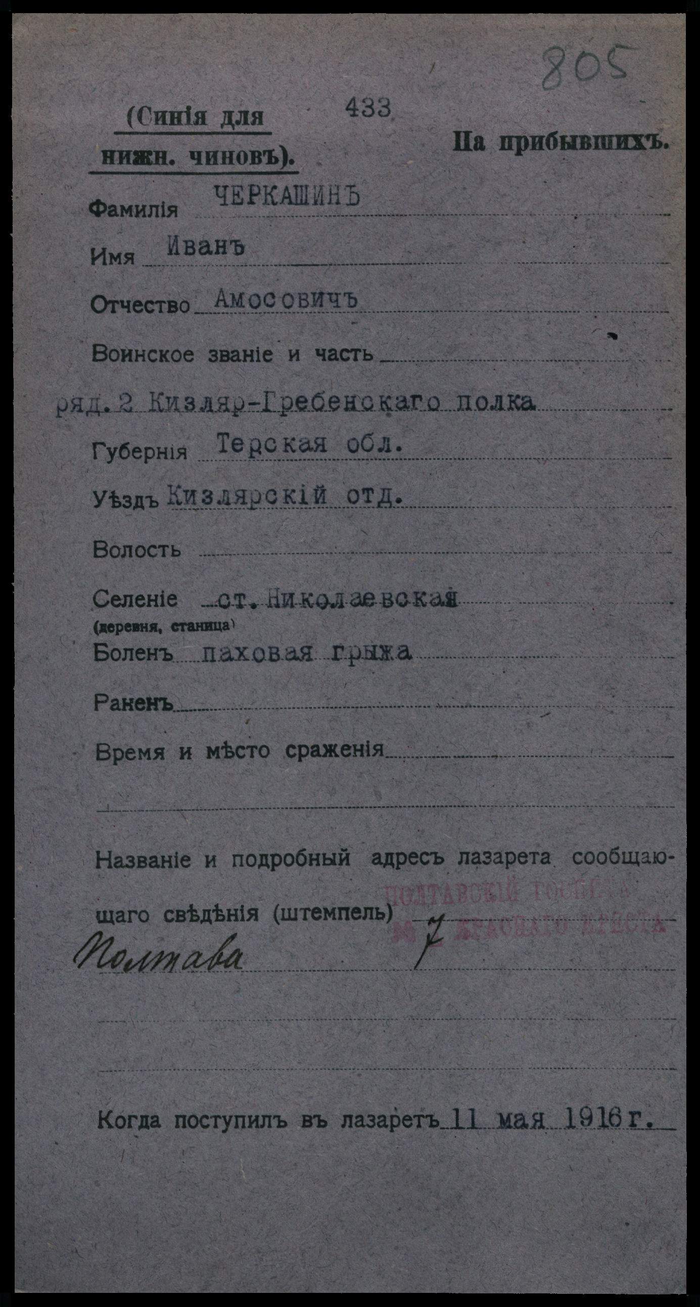 Рядовой, __.__.1919 Краснодарский край, Наурский р-н, ст. Николаевская. Донесение о потерях