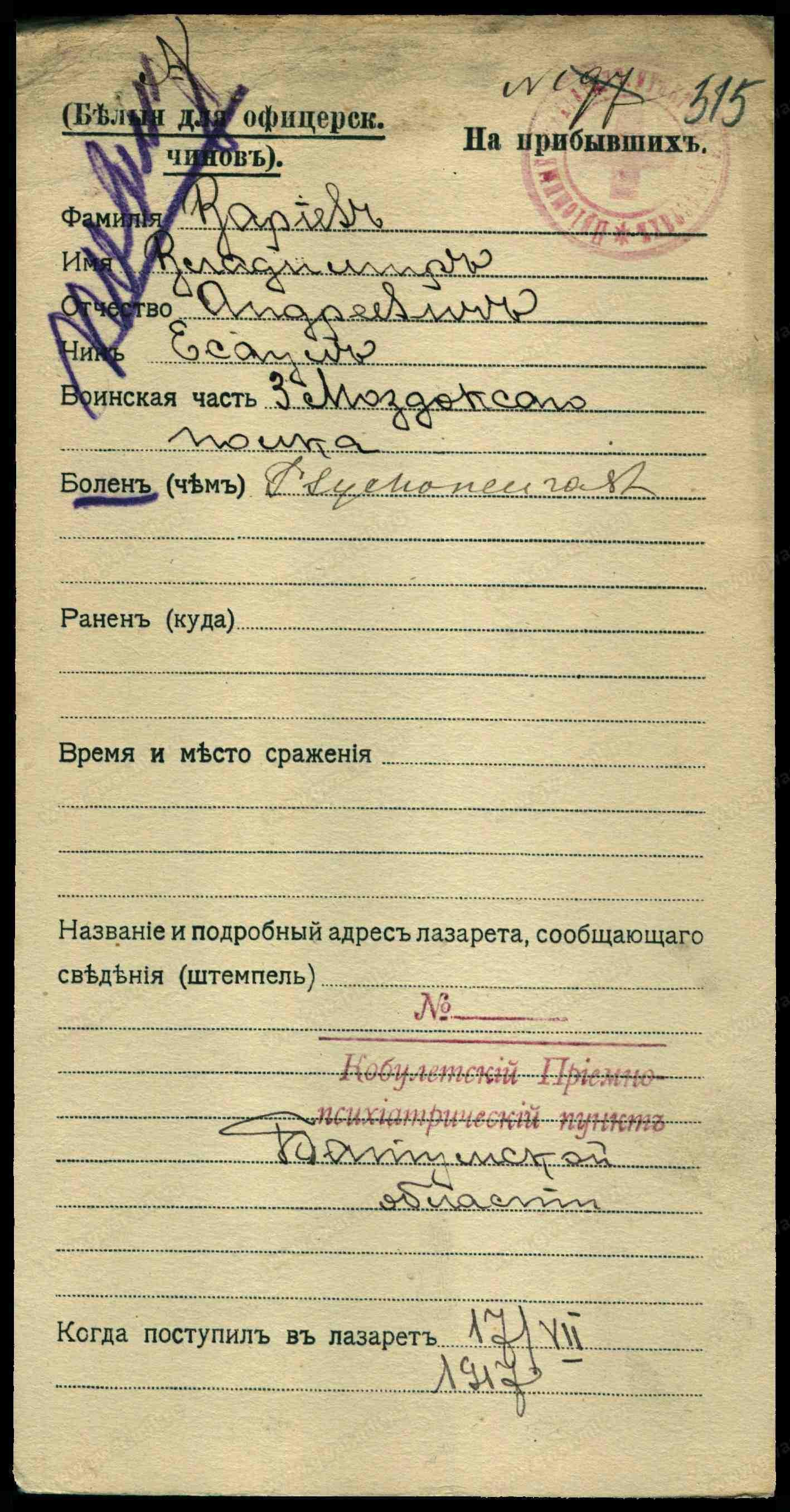 Вариев Владимир Андреевич, р. 7 фев.1878. Из казаков ст.Черноярской Терской обл.
