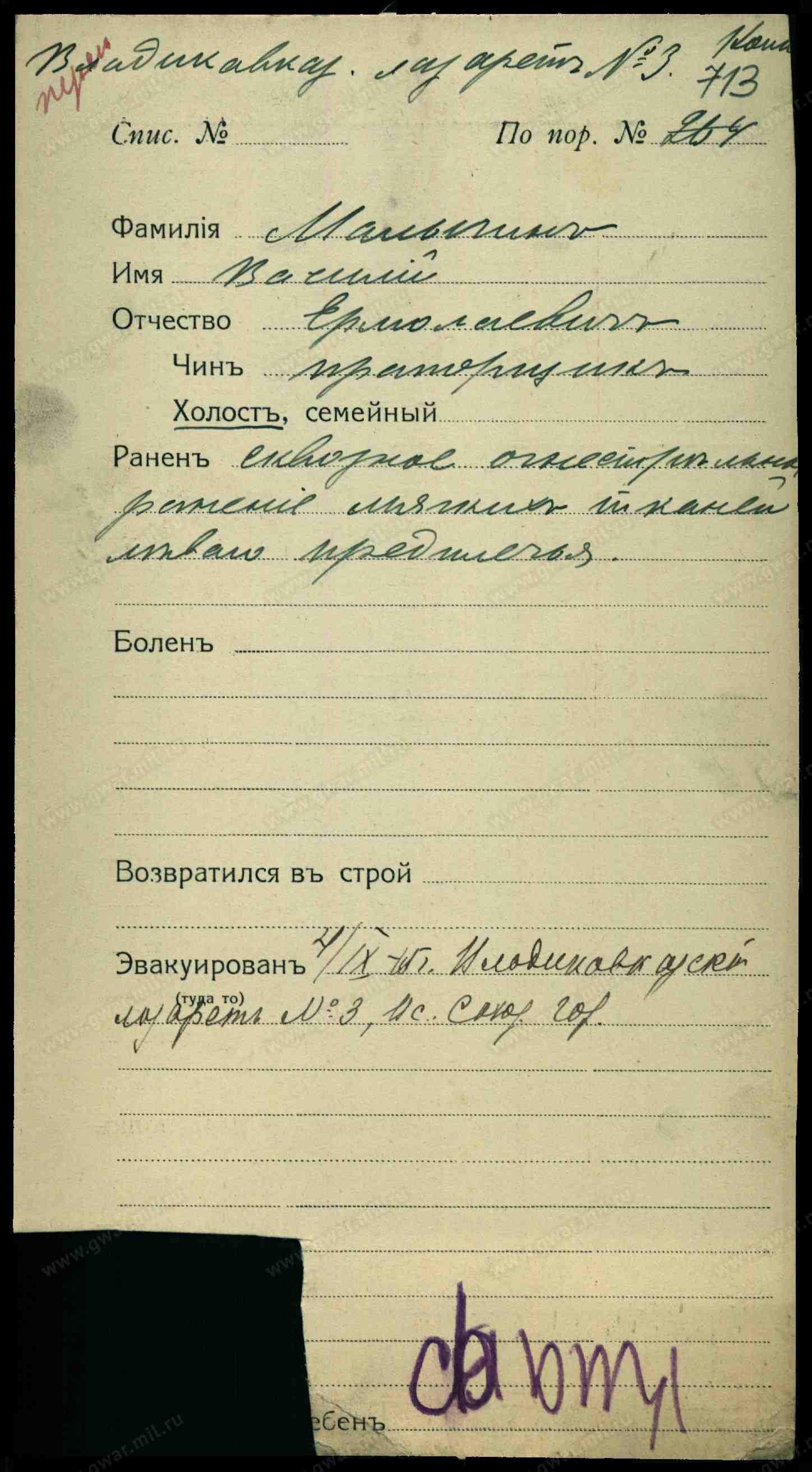 88 Малыгин Василий Ермолаевич Государственная Умер от ран, Хорунжий 26.06.1916