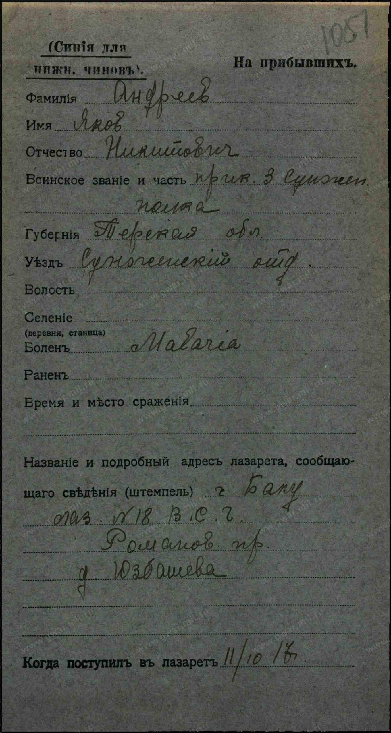 Сержант, __.__.1919 Северо-Осетинская АССР, Моздокский р-н, ст. Терская. Сводная картотека