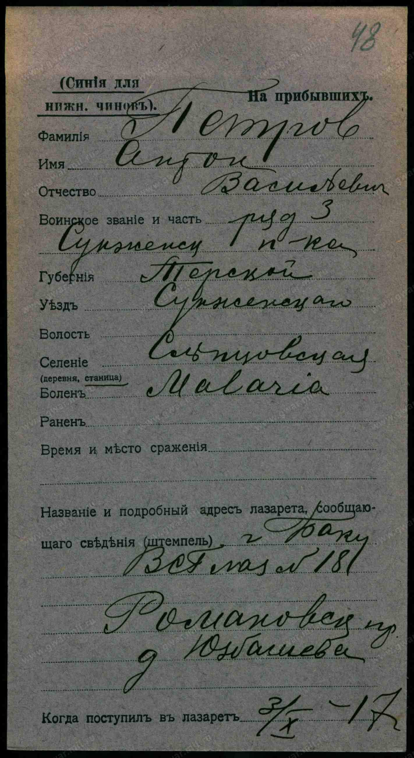 Фонд Картотека бюро учета потерь в Первой мировой войне (офицеров и солдат)