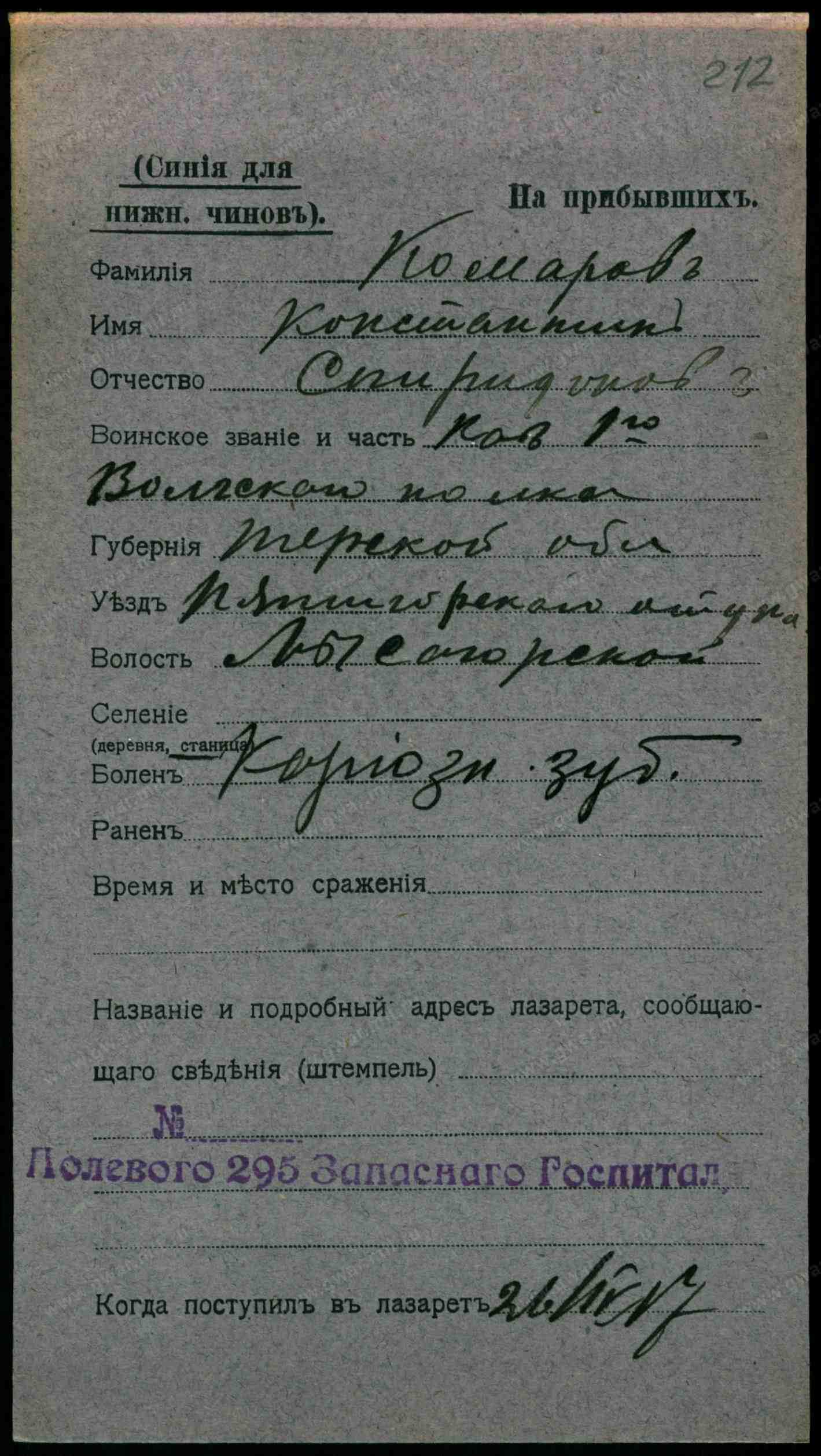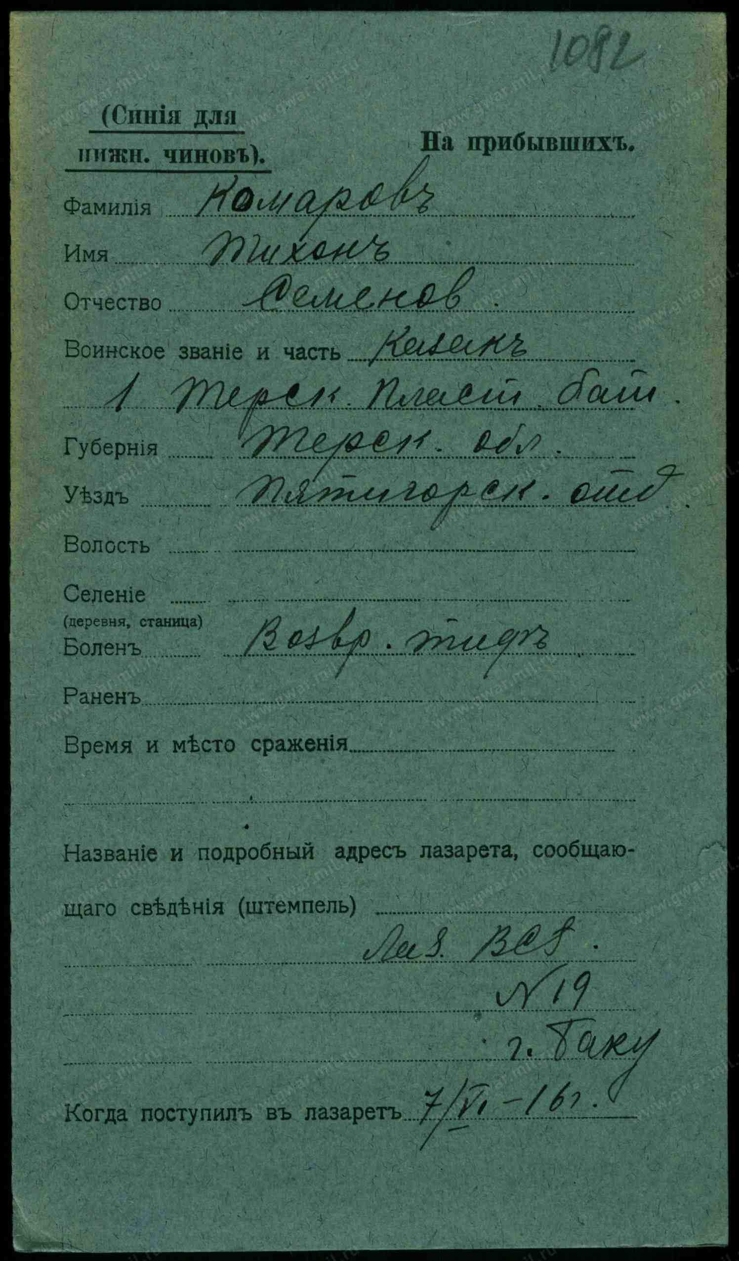 Старшина, __.__.1911 Ставропольский край, Георгиевский р-н, ст. Лысогорская. Сводная картотека