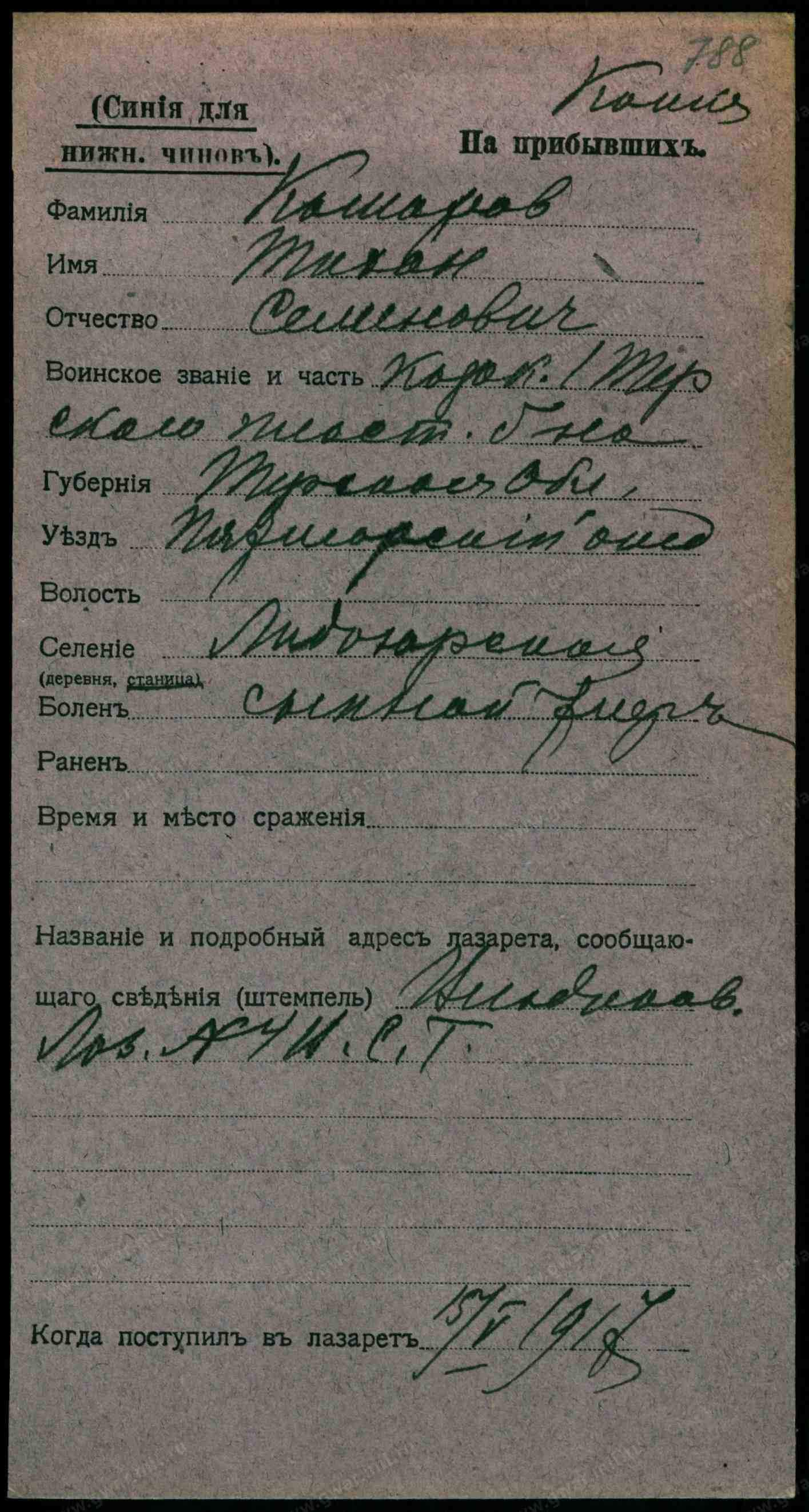 Наименование воинской части: воен. лазарет 8,воен. лазарет 9,13 ождбр
