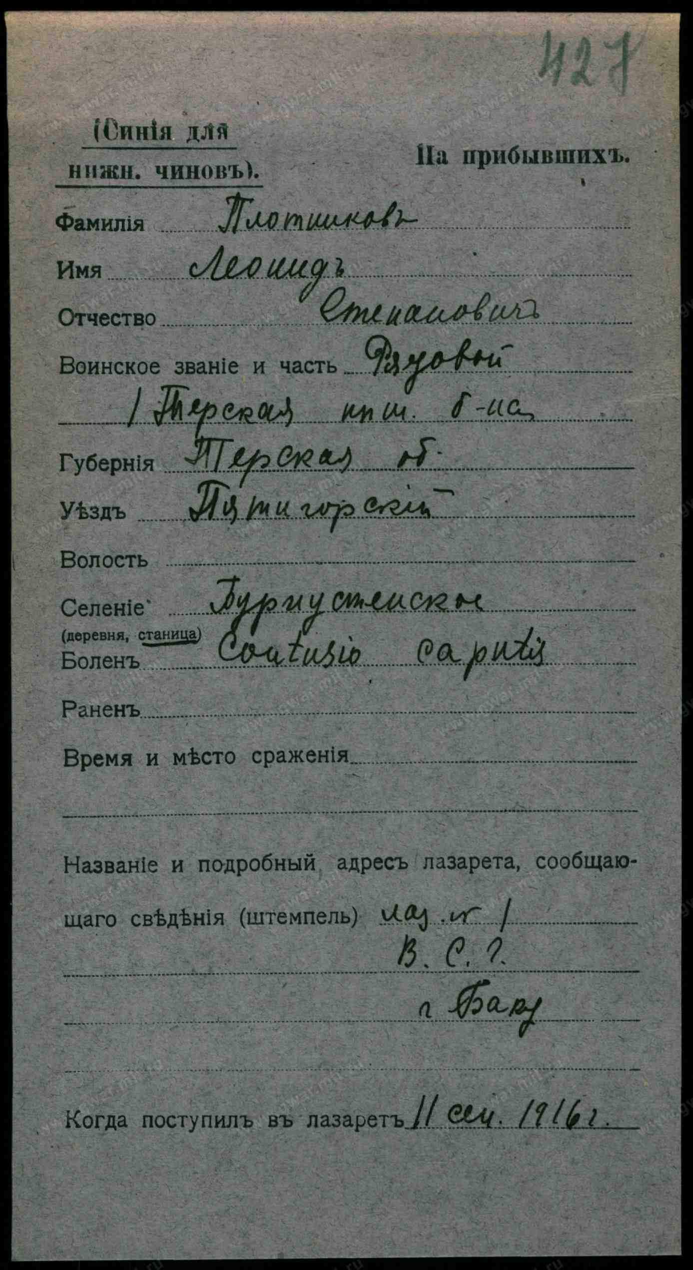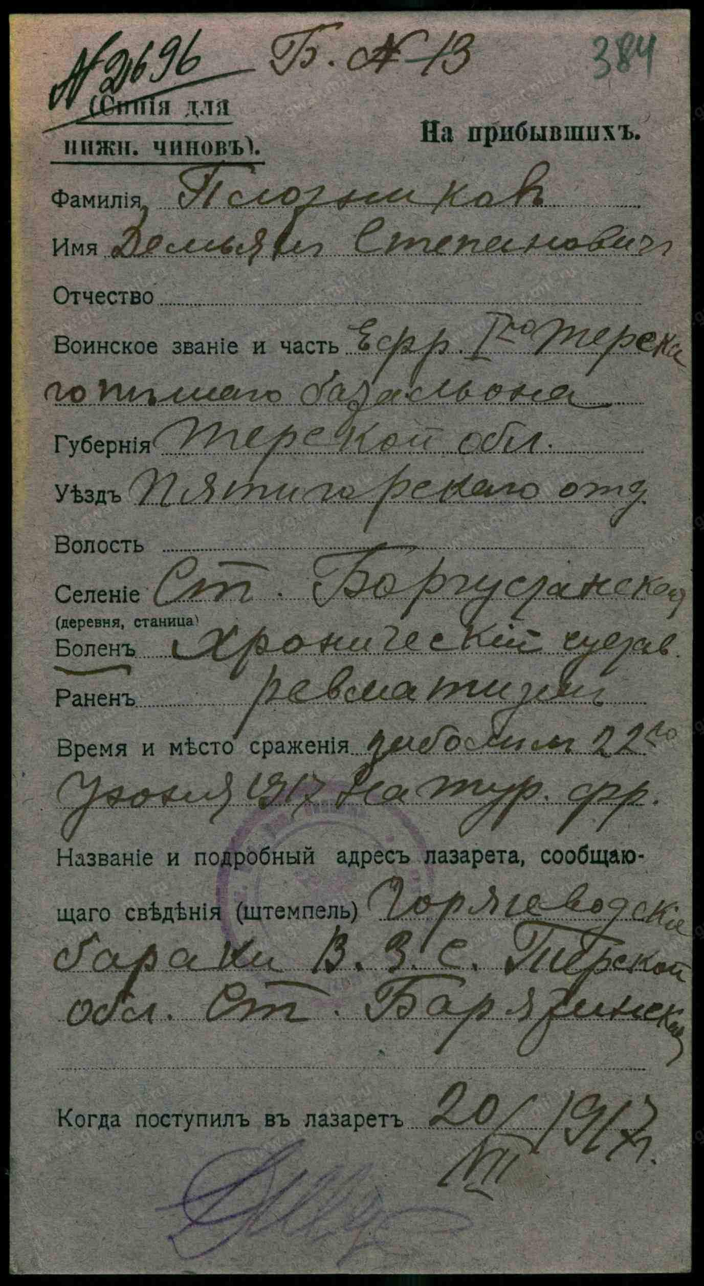 Гв. красноармеец, __.__.1903 Ставропольский край, Суворовский р-н, станица Боргустан. Сводная картотека