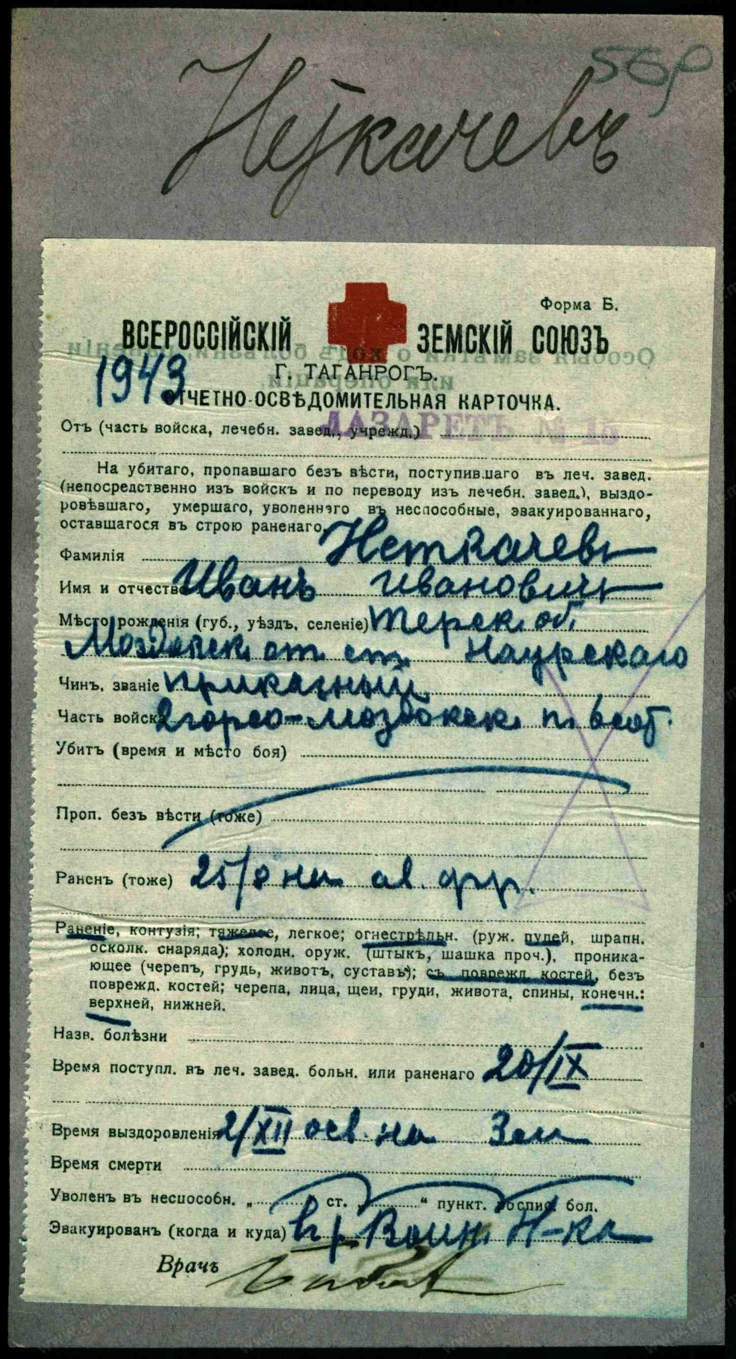 Ранен/контужен. Картотека потерь