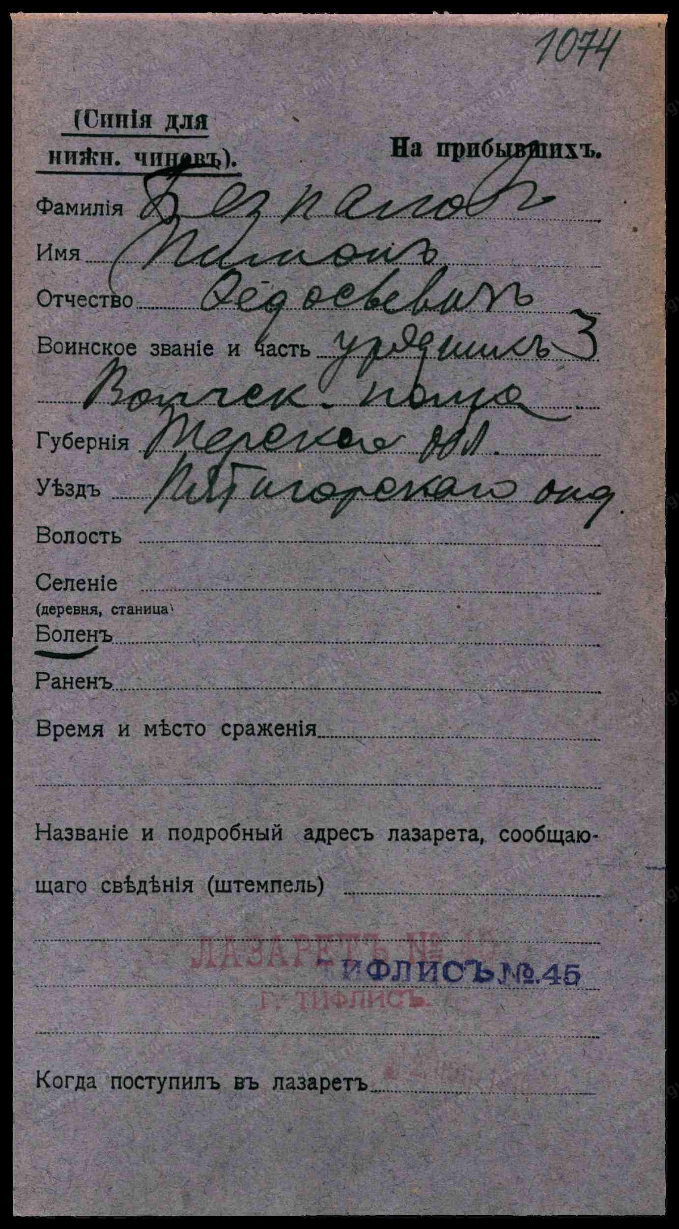 Место лечения: Самарская губ., г.Самара
