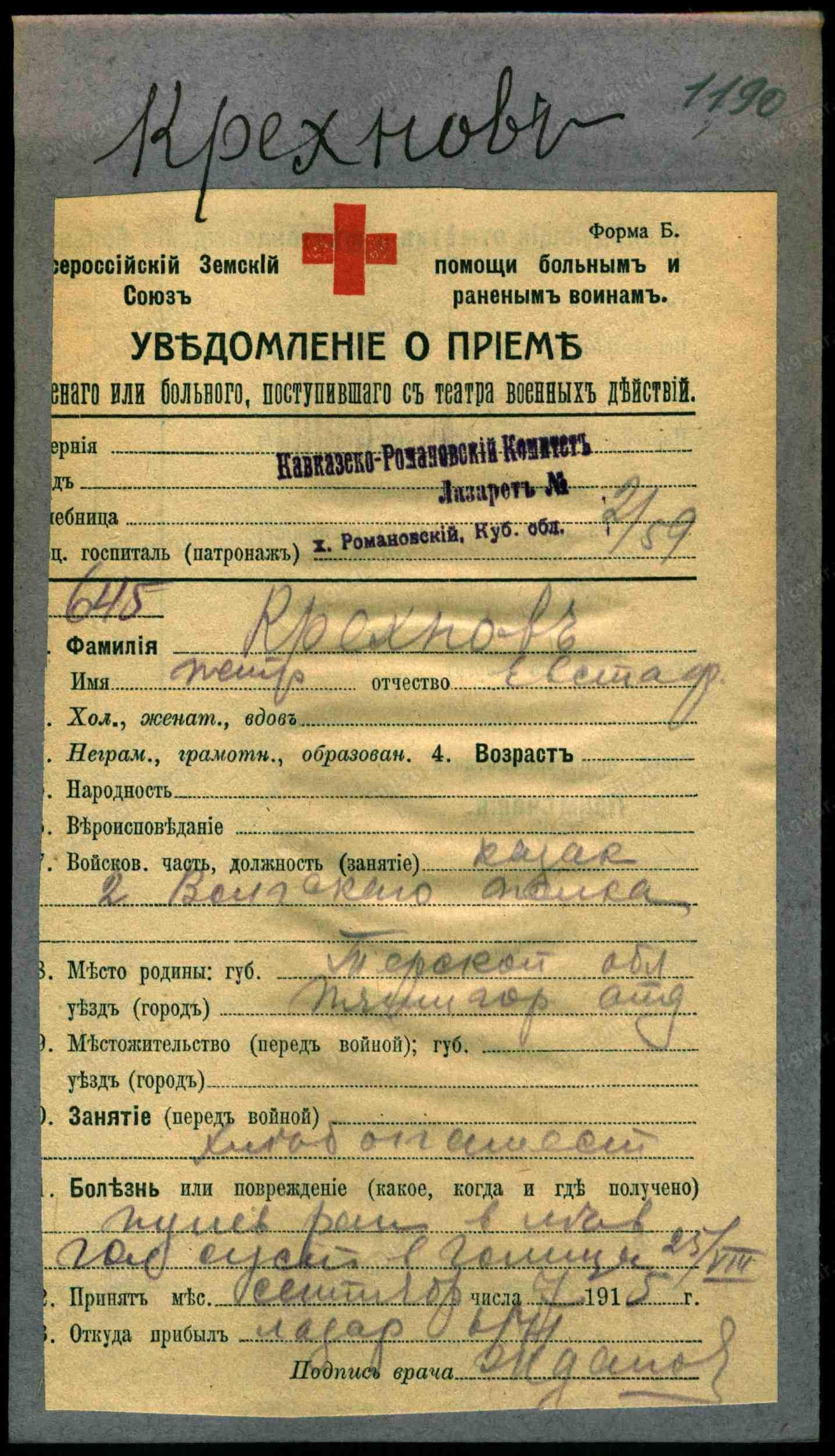 Крыхнов Федор Семенович, р. 17 сен. 1894. Из казаков ст. Горячеводской Терской области. Казак СЕИВК. Во ВСЮР и Русской Армии до эвакуации Крыма. Был на о. Лемнос. В эмиграции во Франции. Ум. ок. 28 авг. 1974 в Вильербане под Лионом. /118/