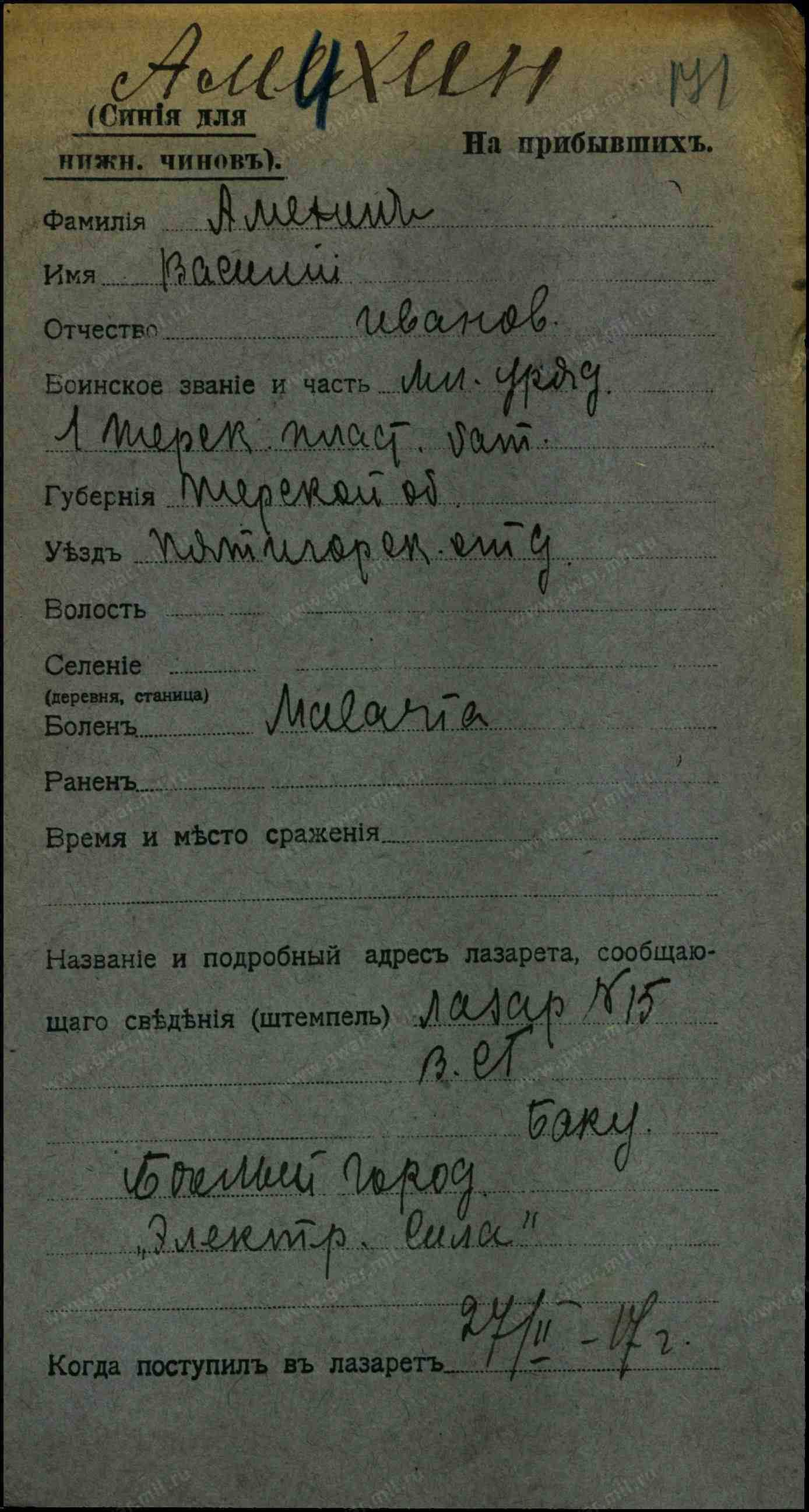 Фонд Картотека бюро учета потерь в Первой мировой войне (офицеров и солдат)