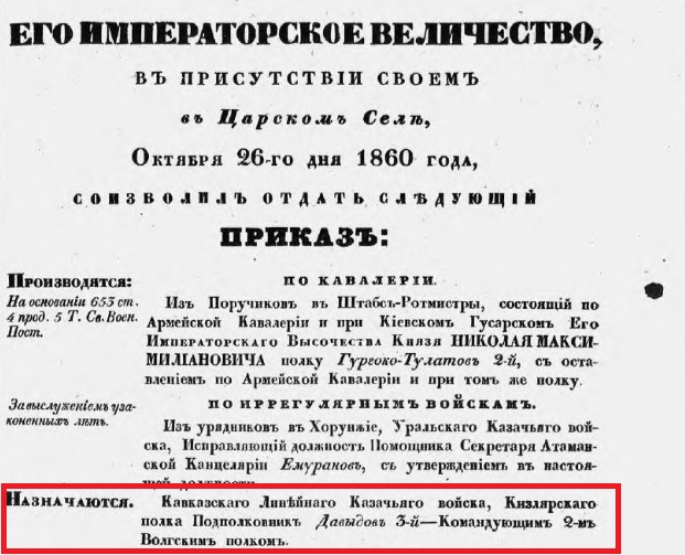 … приказом по полку, я был назначен командующим 4 сотнею 2-го Волгского казачьего полка.>