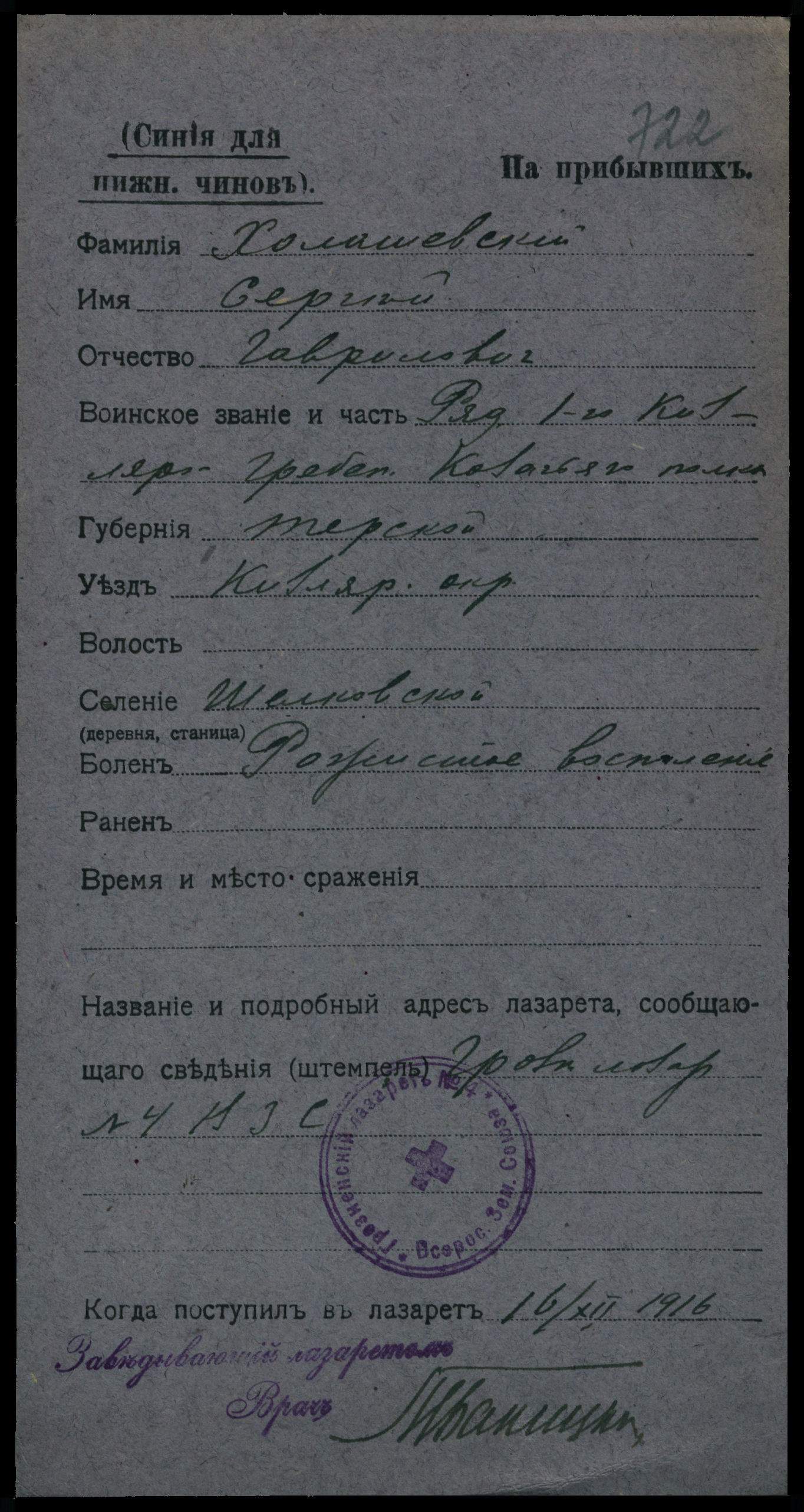 место призыва не Шелковской РВК