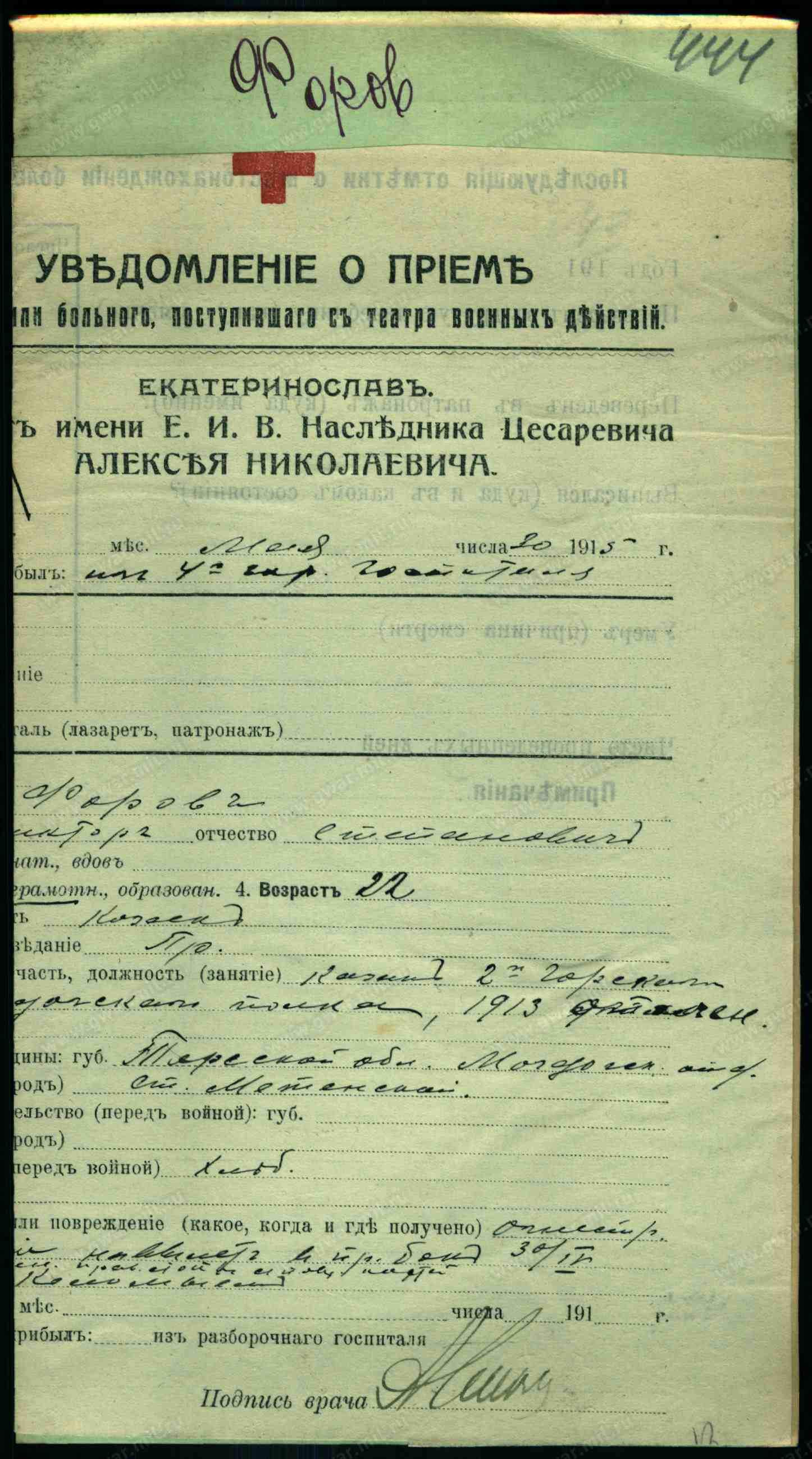 Дата выбытия 30.04.1915