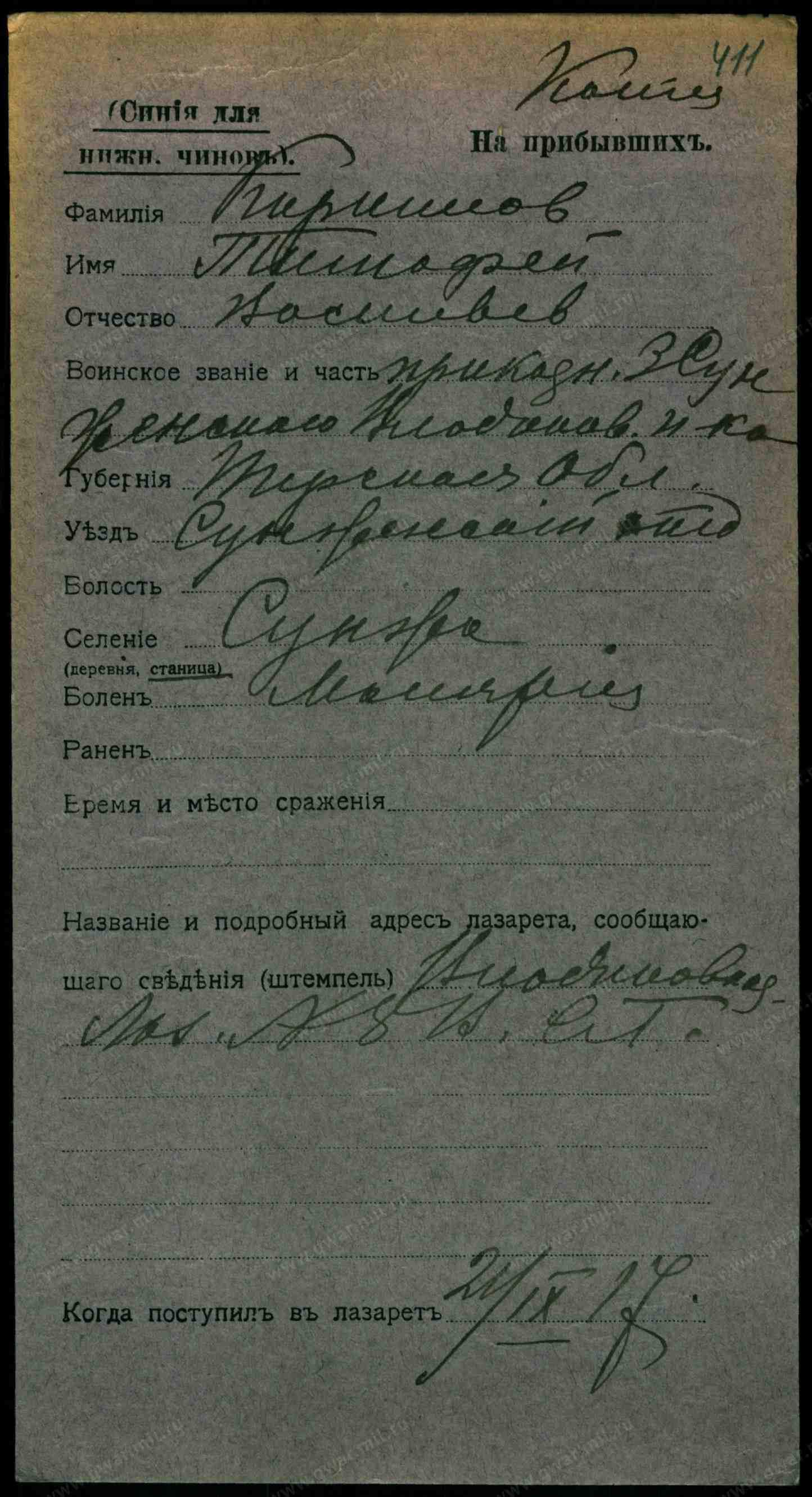 Фонд Картотека бюро учета потерь в Первой мировой войне (офицеров и солдат)