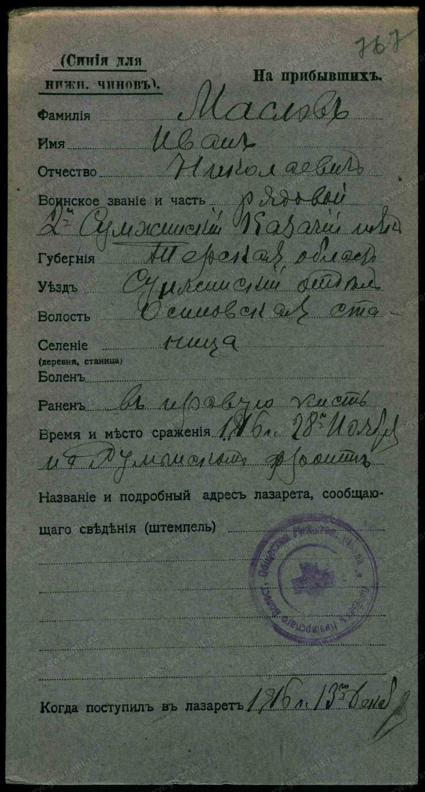 32. Маслов Иван Дмитриев, ст Ассинской, умер от ран, 2 январья 1915 в гор. Тифлис