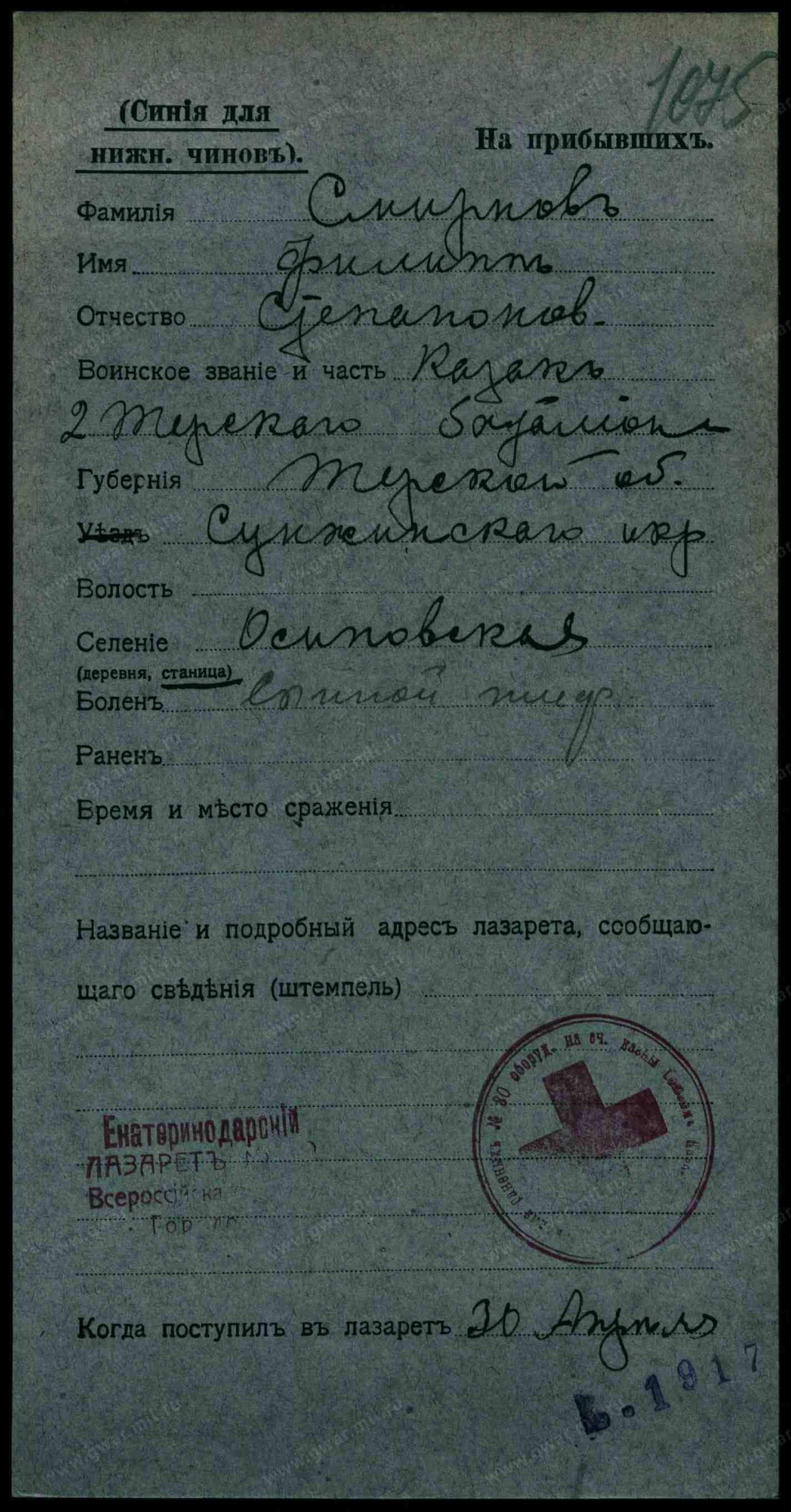 Красноармеец __.__.1917 Чечено-Ингушская АССР, Грозненская обл. , Место службы: ппс 1629. Донесение о потерях